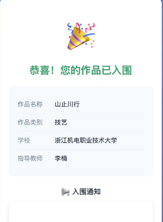 近日,由江西省教育厅与景德镇市人民政府联合主办的天工开物·智韵瓷章——第二届全国大学生陶艺作品展参展名单正式公布,我院学生李钰清创作的陶瓷作品《山止川行》凭借鲜明的艺术特色与深厚的文化内涵成功入选,为学院艺术教育成果再添亮眼成绩。